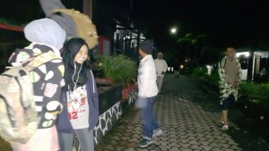 Berkumpul di depan lobi hotel tunggu jeep..