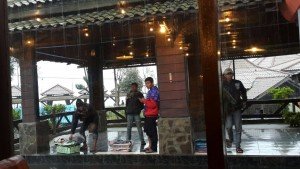 Kami makan pagi.. Wah berselera betul.. Tempe goreng  kami makan 50 ketul..Masakan lain2 kami sukar nak makan .. (makan juga tp sikit utk alas perut je) sbb agak pelik masakannya pd kami tekak susah nak terima… Air kopi panas cukup menyegarkan berlawan dgn suhu dingin mentari  pagi…