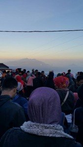 Turun je kereta.. Sesak dada kami semua sbb sejuk dan keadaan  menaik yg sgt tinggi.. Kaki kejang sgt..Terhoyong hayang.. Kena pulak perut lapar.. Moto banyak sgt offer kami utk naik ke atas  setinggi  2km gak kami mendaki.. “bu bu naik ojek aja bu..20 ribu rupiah sja buk ngak mahal.. Biar simpan tenaga bu mahu lihat sunrise nanti “.. Sekitar RM5.70 … (20 ribu rupiah tu..)