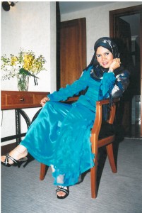 Saya awal saya pakai jubah tahun 2003, nak cari yang cantik memang susah nak dapat yang betul-betul kena dengan test saya. Saya nak nampak tinggi – kurus – sorok kegemukan badan saya – warna yang hidup dan sharp – bunga segar dan pastinya fesyennya lain dari orang lain.