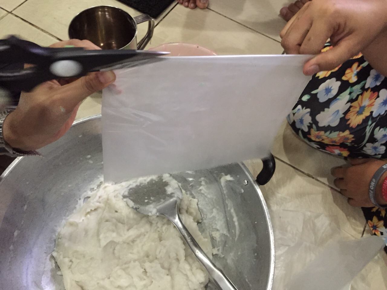 Masak atas api sederhana.. Masa masak ni kacau jangan berhenti.. Agak kental dah bersatu kira siap lah tu, sbb kita akan bungkus dn kukus kuih koci sekali lagi.. So masak bersatu sudahlah..11713180_756040124519399_1599575110_o