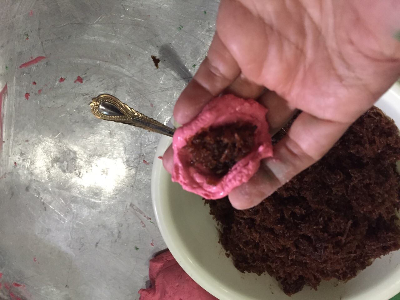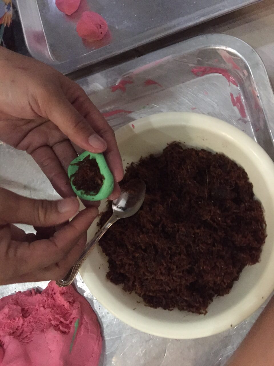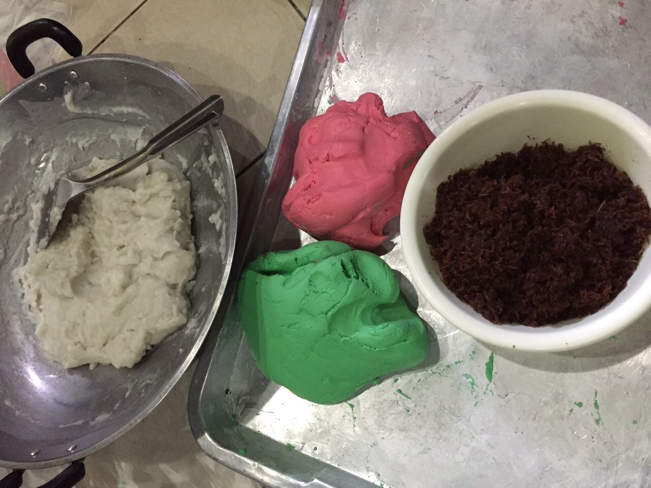 Bahagi 2 tepung tu.. Asingkan utk warna merah dan hijau.. Uli sampai lembut.. Untuk buat kuih koci ni saiznya kena kecil dari saiz koci biasa ya puan2.. Sbb nanti kita nak satukan dalam daun pisang..11659161_756040047852740_1485409770_o
