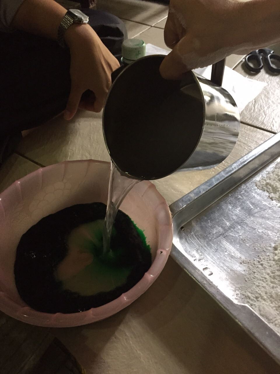 2. 1 sudu besar tepung hangkwee (kedai buat kek banyak jual.. kalau xda x pa.. Cuma adunan x kan jadi jernih bila dah jadi nanti)