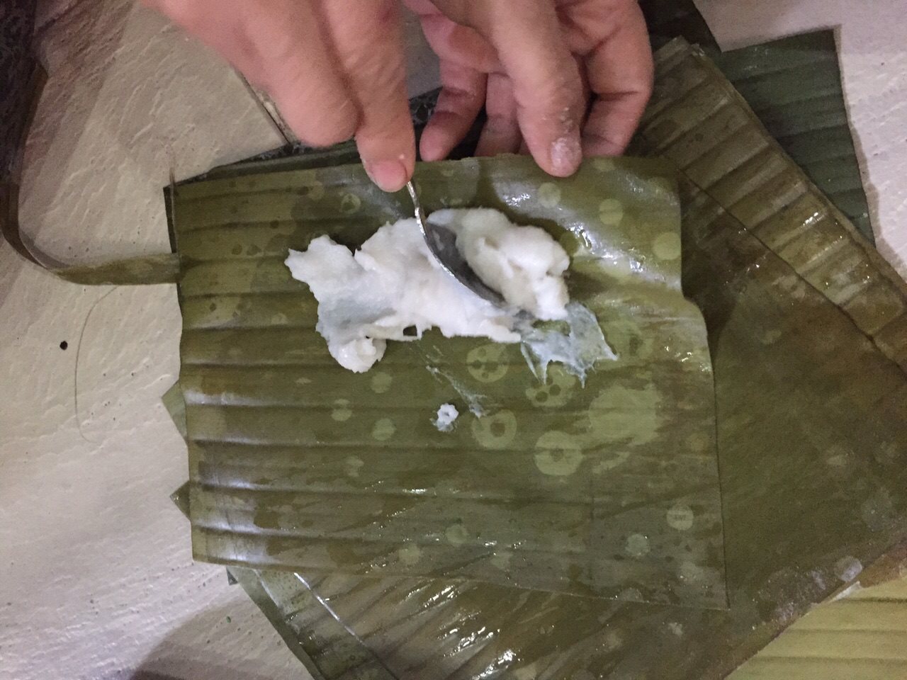 11713314_756040164519395_82380338_oBila semua dah ready, kita bungkuslah atas daun (nak jadikan bentuk lepat.. kalau nak cantik lagi boleh bungkus dalam plastic, lagi cantik.. Transparent.. Nampak kuih dri luar.. he he itu kalau nak menunjuk boleh lah..Ni nak makan dgn family x payahlah.. (Janji sedap) Caranya letak adunan nagasari memanjang dan koci pula dikiri kanan lepas.. Senang sangat nak bungkusnya.. Lepas tu kukuslah dalam 20 minit..
