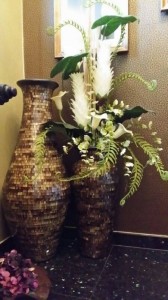 Harganya Cuma RM 180.00 sahaja..Jika anda melihatnya sendiri pasti teruja sangat cantik dan harga pasu ini seperti berharga RM 3000,00 ke 6,000.00 .. Memandangkan sudut ini gelap saya menghias pasu kecil dengan bunga putih dan konsep daun dan bunga-bunga hutan. Ia menambahkan seri sudut tangga naik ke bilik atas rumah kami.