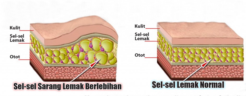 Yg penting kalau dah gemuk jangan biar kegemukan terlalu lama.. Kalau lama mmg susah nak kurus. Sebab lemak dah bergumpal dengan daging jadi tepu ( kebal).. Sel atau sarang lemak kegemukan sudah tersedia dalam badan org yg pernah gemuk.. Makin lama gemuk makin besar dan banyak lah kelongsong lelemak.. haaaaaa jangan ingat kalau dah kurus akan kekal kurus. Berpotensi anytime gemuk semula.. Itu hakikat yg x boleh dielakkan.. Gambar rajah ini menunjukkan sel2 sarang lemak yang masih tersimpan/tersedia bagi orang yang pernah mengalami kegemukkan..