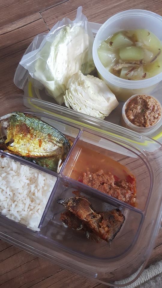 Bawah bekas nasi ada 4 compartments.. Ikan, sayur, sambal dn nasi. Ada kelas kan.. he he he..